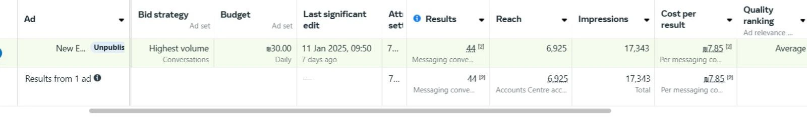 التكلفة كانت 7.85 لكل محادثة تمت عبر الإعلان.