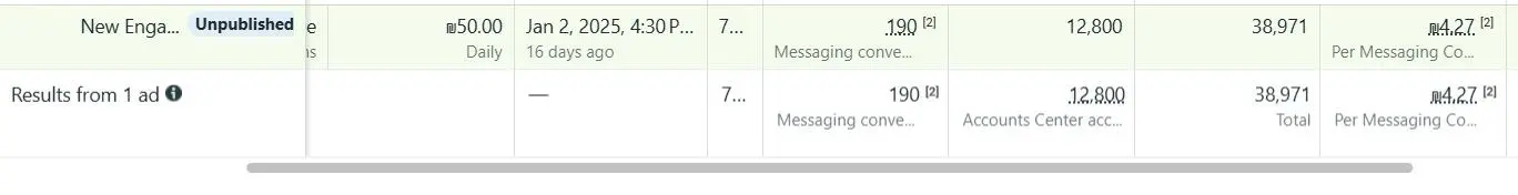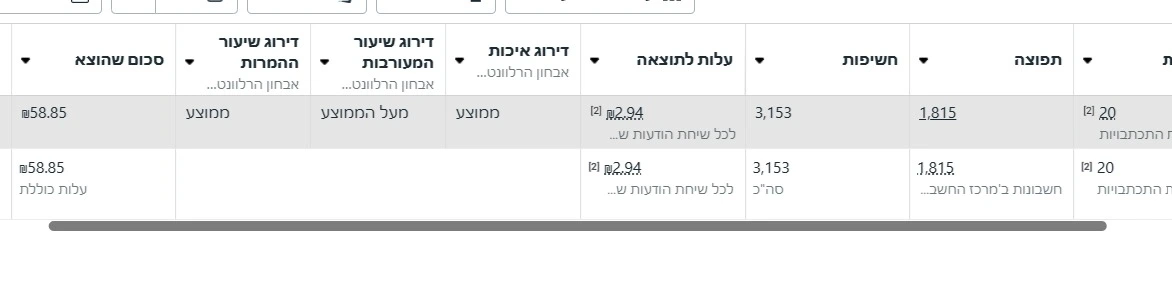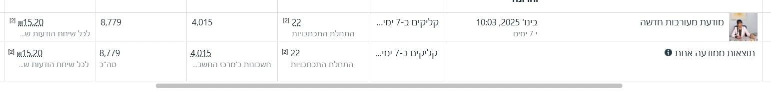 50.00 Daily → الميزانية اليومية للحملة كانت 30.00 شيكل يومياً.
